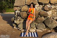 An amazing strip and tease show by a gorgeous skinny teen babe who shows her flawless slim body outdoors at a beach.